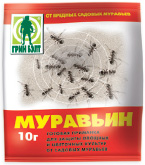 Специальное средство от вредных садовых муравьев. Повышенная безопасность препаративной формы выгодно отличают МУРАВЬИН от аналогичных препаратов. Готовый к применению препарат очень удобен — не нужно ни с чем смешивать или разводить водой. Расход препарата - 20-30 г на 10 кв.м., внесение в муравейник на глубину 2-3 см